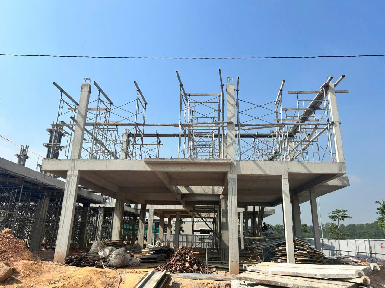 Khu biệt thự: Thi công đồng loạt phần thô, hoàn thiện móng đến xây dựng các tầng, từng bước hiện rõ hình dáng không gian sống cao cấp.